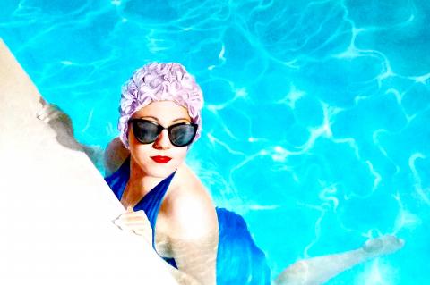 The photorealistic swimmer serenely swanning on our red, white, and blue cover is by Elise Remender, an artist who shows her sunshine-soaked paintings — with an old-school-Hollywood Technicolor filter — at the White Room Gallery in East Hampton.