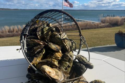 On the Water: Oysters AplentyI relocated the cages of my juvenile oysters to my next-door neighbor’s dock here on the east side of North Haven, where the current runs swift. Oysters grow fast and plump in strong tidal flow.