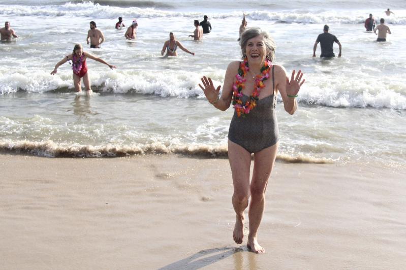 Surprisingly, it was almost balmy on New Year’s Day when, at 1 p.m., around 500 intrepid people plunged into the ocean at East Hampton Village’s Main Beach with at least twice as many fellow citizens cheering them on.