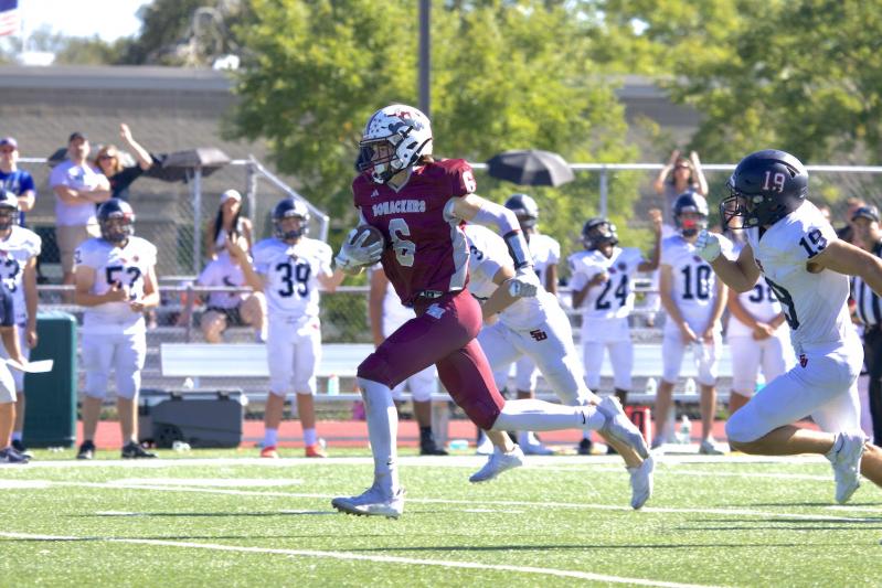 Highlights included Jai Feaster’s 145 yards on nine carries with two rushing touchdowns, plus five tackles and a sack. Alex Davis, who along with Feaster hails from Bridgehampton, ran for two touchdowns. Livs Kuplins, an East Hampton senior, had three receptions totaling 70 yards, including a 17-yard touchdown catch. He also had a 50-yard touchdown run.