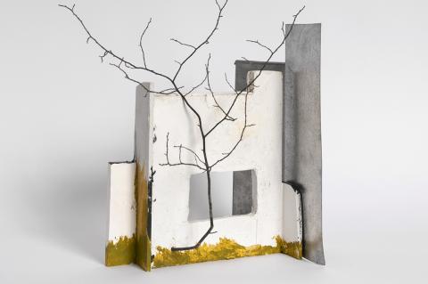 Mark Webber's new sculpture at Anita Rogers Gallery in Lower Manhattan explores the combination of home building materials with found elements from the natural world.