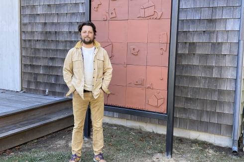 Fitzhugh Karol, whose work is on view at the Arts Center at Duck Creek in Springs, moves with assurance from ceramic reliefs to iconic wooden totems to large-scale steel sculptures.