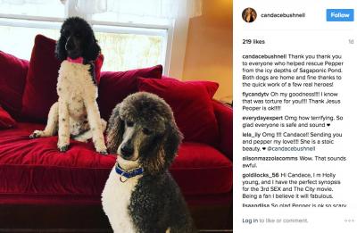 Candace Bushnell, the writer behind the HBO hit series "Sex and the City," ran into the frozen waters of Sagg Pond on Wednesday afternoon to rescue one of her two dogs, which had walked out on the ice and fallen through, but had to retreat before she could reach the animal. She was taken about an hour later to Southampton Hospital after a volunteer firefighter saved the dog.
