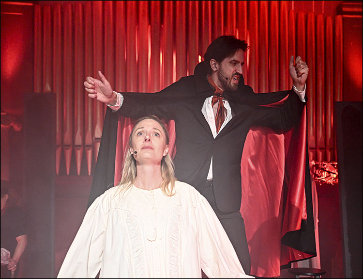 While Mr. Disher has directed a number of radio plays over the years, he has never heard of one of “Dracula.” The stage will be set up like a radio studio. As a melodrama, he said, it does lend itself to all of the bells and whistles when it comes to the things that make us afraid. There will be music, a sound effects table that can generate fog or haze or lighting, “and the actors can grab a costume or prop or a cape or fangs. And yes, there will be blood.”