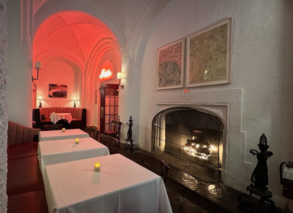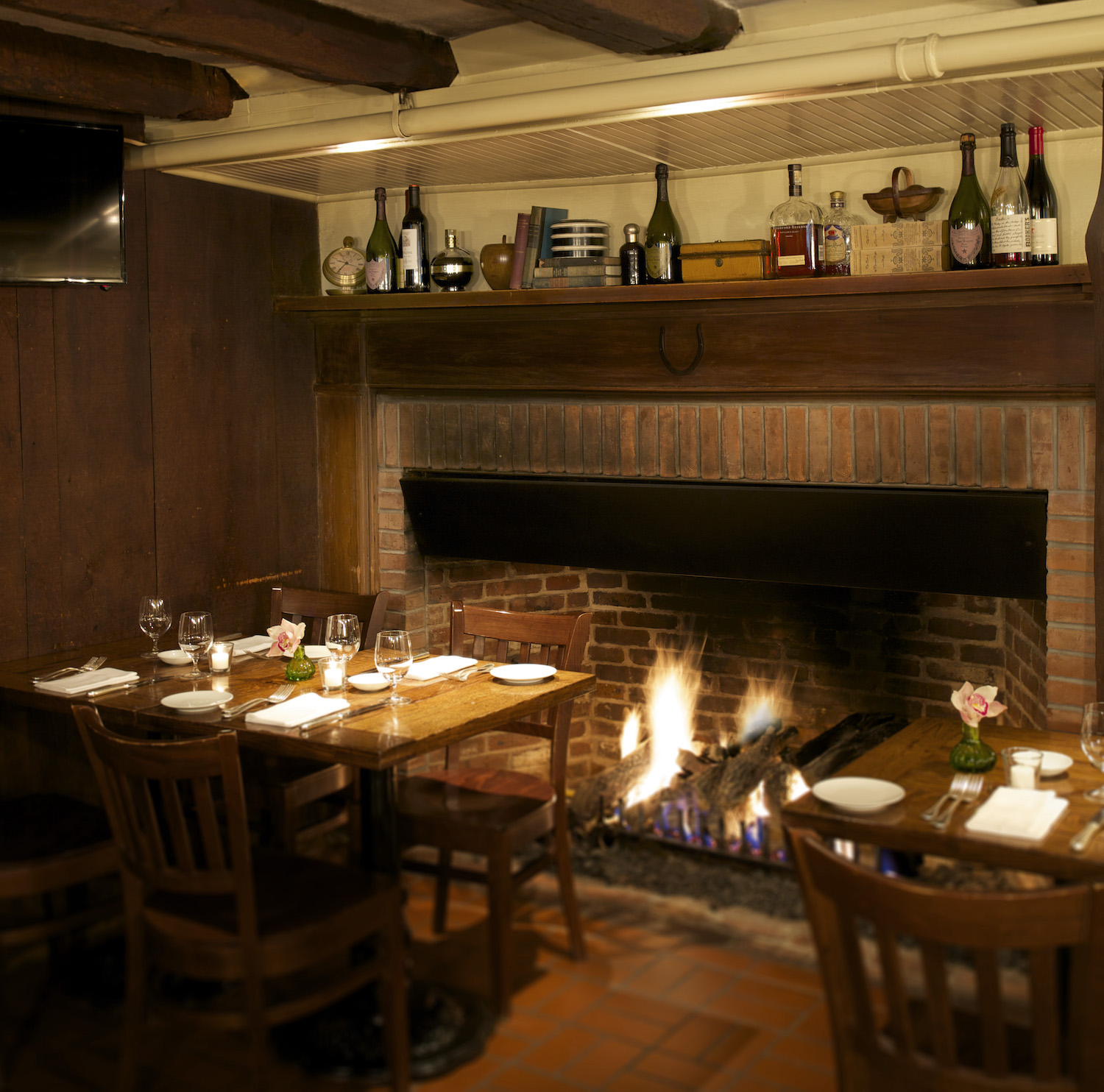At The Palm, inside the historic Huntting Inn, the fireplace is in a wood-paneled room off the always lively tavern rather than in the main restaurant, but you can order a cocktail and light bites to enjoy fireside, and sometimes that’s all you need when the sun sets at 4:30.