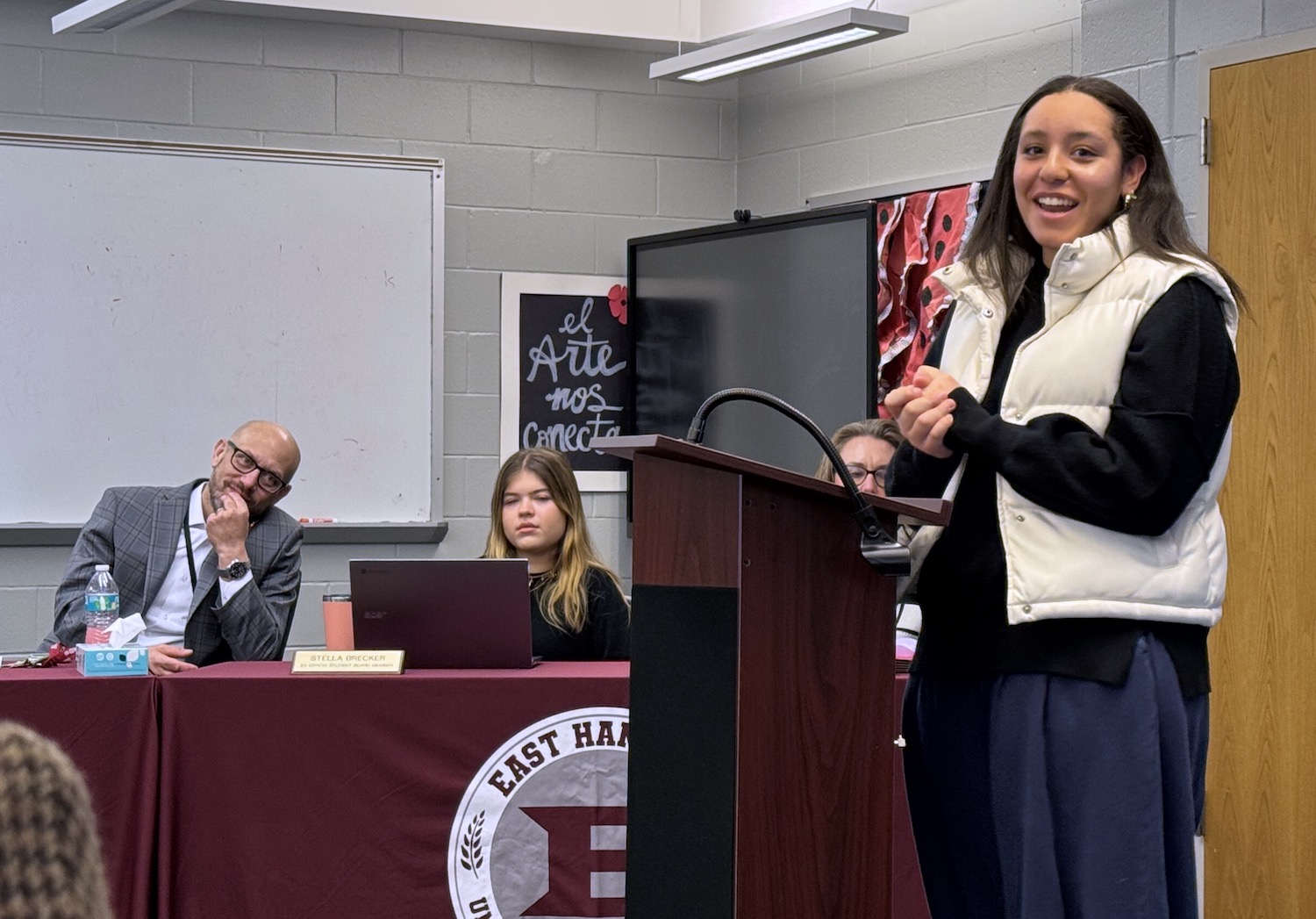 “As a three-sport athlete, I really appreciate the athletic advancements,” Maya said. “Apart from the sports, I think it’s important to acknowledge all of the other interests of the community because it’s really diverse. Cosmetology for the incoming middle school students is really important because the BOCES program is really far away. I’ve played the flute since fourth grade and while I don’t know a lot about the sound system [in the auditorium], I think advancements would be great. We have a lot of talent coming up to the high school. I think the diversity of this list is really great and I support it.”
