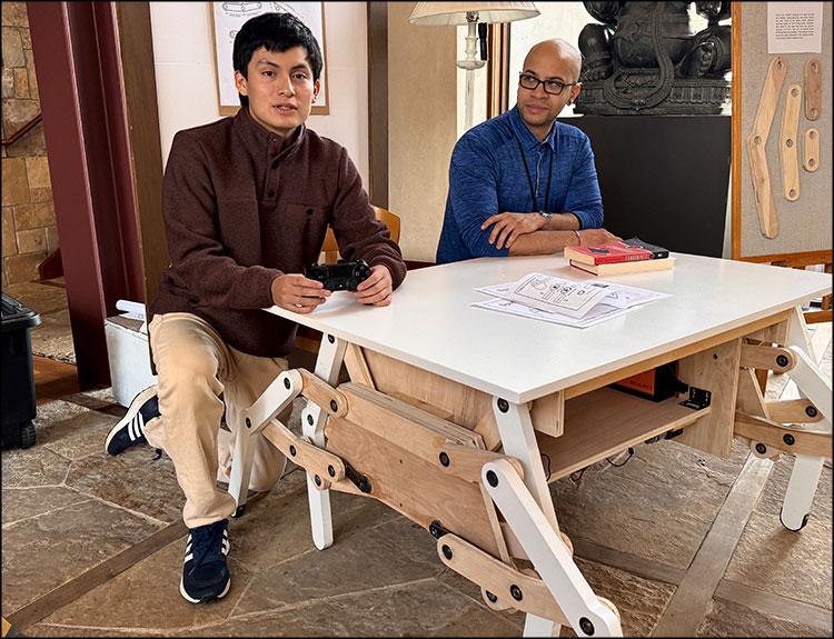 “She wanted to rearrange furniture in her house, but because she doesn’t have the physical strength to do it anymore, she was having a lot of difficulty,” Bryan explained. “So, in the face of this problem, I looked back at my old love for mechanical walkers in some old Lego videos that I used to watch and they would have these contraptions that would allow full-on robots to move around with a leg-walking motion. I decided to make a table that uses the same mechanism that the Lego walkers did.”