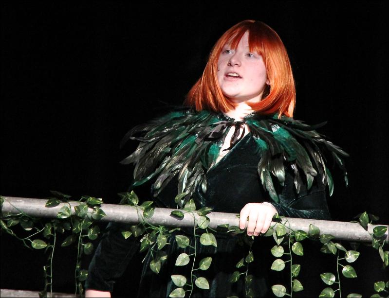 Faith, a freshman who played the Witch, had one of the most challenging roles in the play and performed it to perfection. She’s such a skilled singer and actress, it’s no wonder no one noticed when her wig fell off during a performance; she found a way to work it into the scene. Thrilled to have been cast in a leading role, Faith was so overcome with emotion when the shows were over that she needed help finding her parents after her final performance.