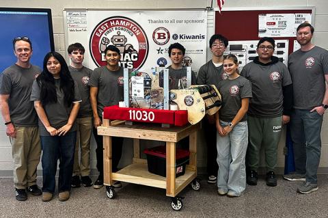 Bonac Bots Win Rookie All-Star AwardIn their first-ever robotics competition at Hofstra University, East Hampton High’s Bonac Bots won the Rookie All-Star award for their robot, the Claminator, and placed 27th out of 48 over all.