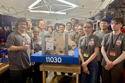 In their first-ever robotics competition at Hofstra University, East Hampton High’s Bonac Bots won the Rookie All-Star award for their robot, the Claminator, and placed 27th out of 48 over all.