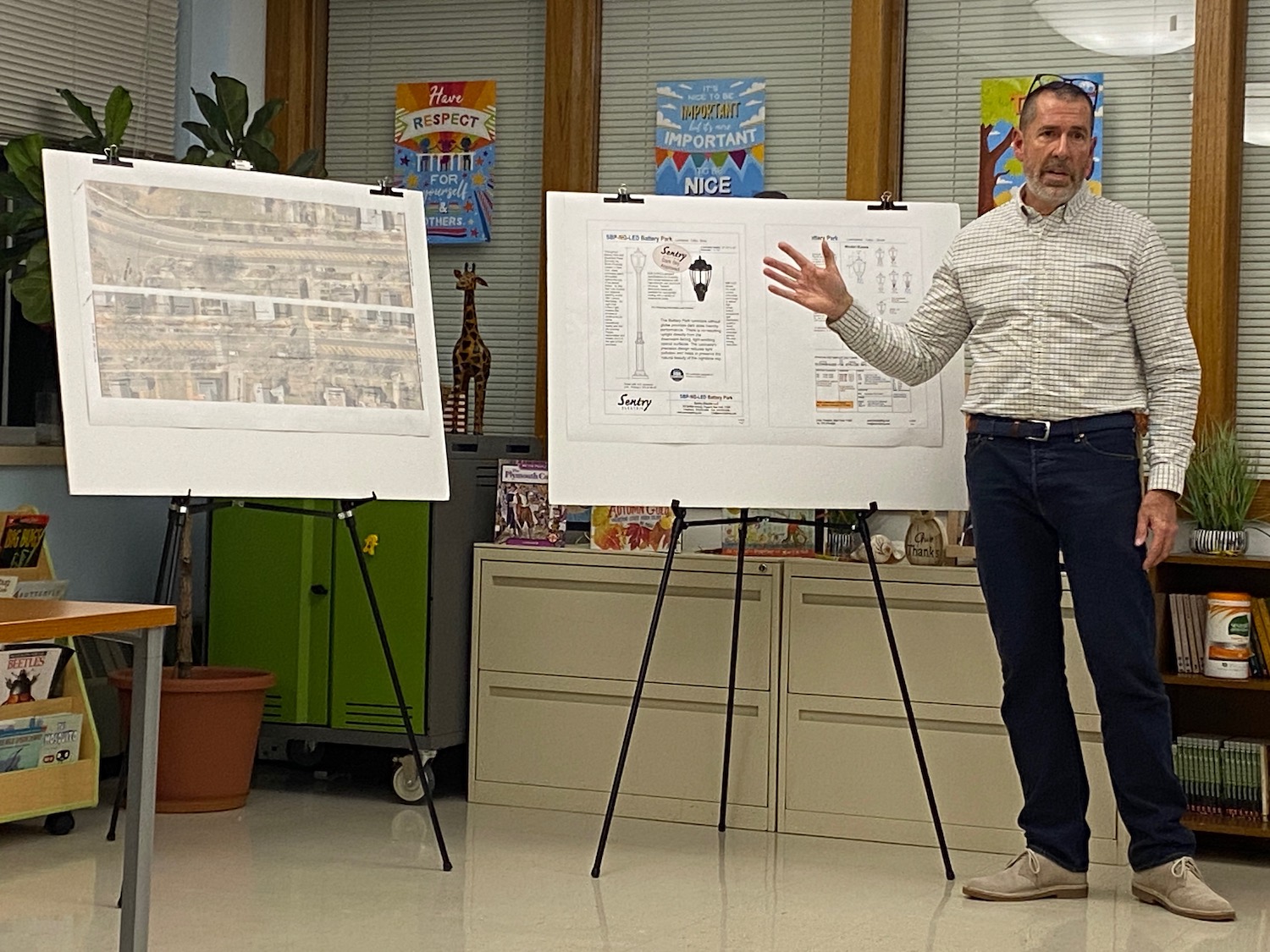 “Essentially, the purpose of this is to get some pedestrian safety,” Mr. Jedlicka said, citing “a lot of dark spots,” including near the hamlet’s library. L.K. McLean Associates is proposing a 2,700 kelvin LED lamp, the measurement indicating a “soft white” or warm, yellowish light that resembles an old incandescent bulb. All lights, he said, would be set in the top of the fixtures and directed downward. No trees or planters would be removed to accommodate the new fixtures.
