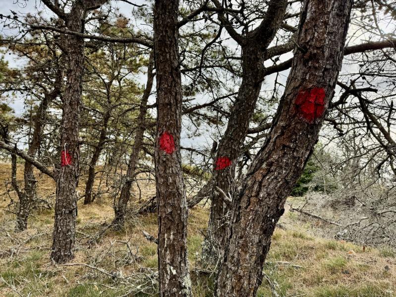 The effort to remove trees killed by the southern pine beetle from Napeague and Hither Hills State Parks and other areas in East Hampton Town is underway, with trees being marked now for cutting that is scheduled to begin next month.