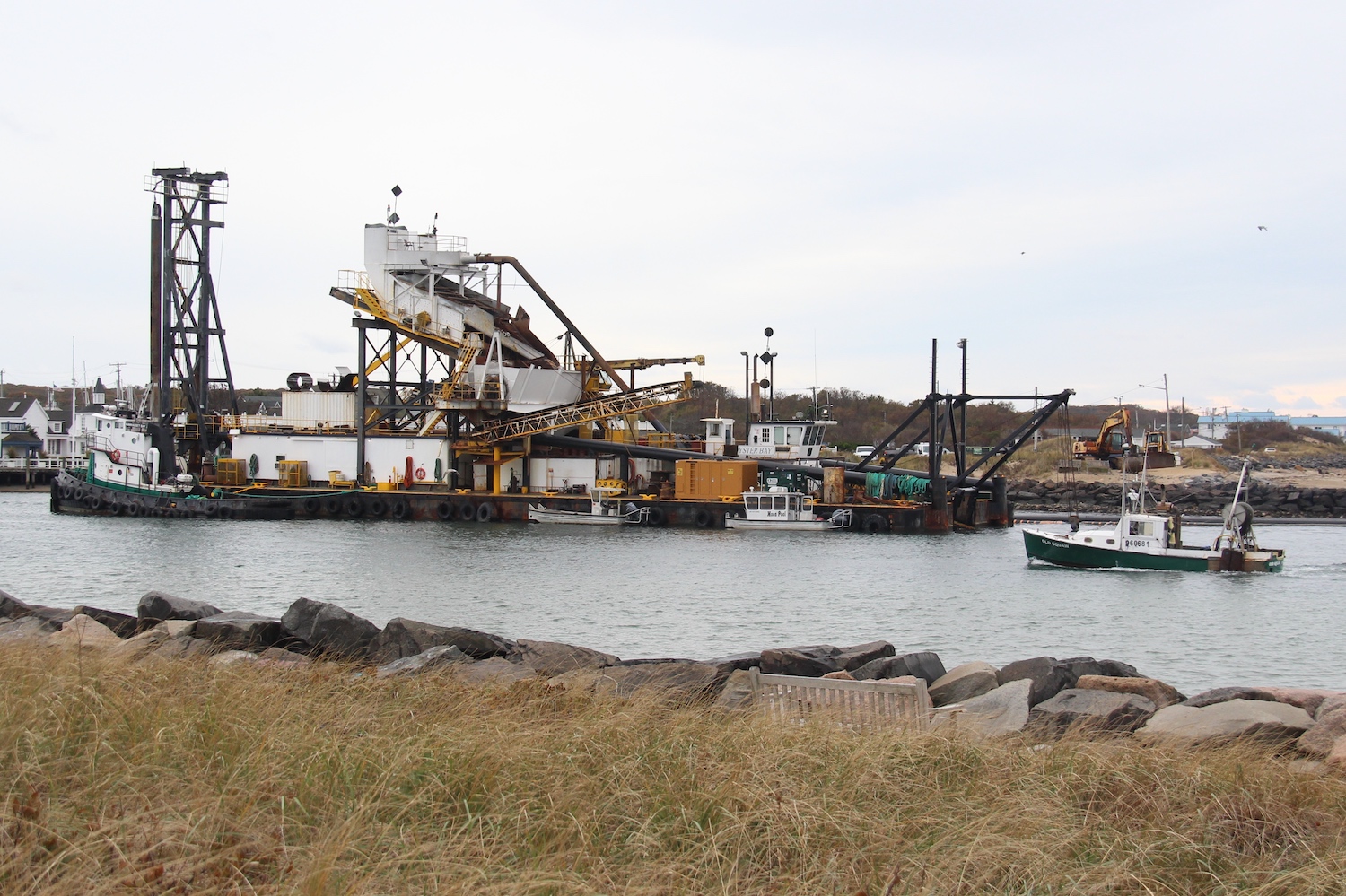 Sand dredged from the inlet, which will increase the navigation channel’s depth to 17 feet, will be placed on the beach west of the western jetty. Operations are expected to continue through January.