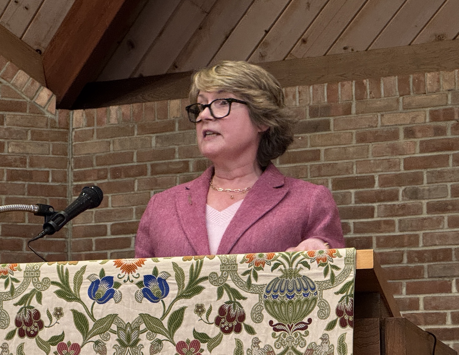 "My heart is racing," the supervisor said from the lectern at a cold St. Michael's Church in Amagansett. "I'm deeply grateful to all of you, for the support and the trust you've placed in me."