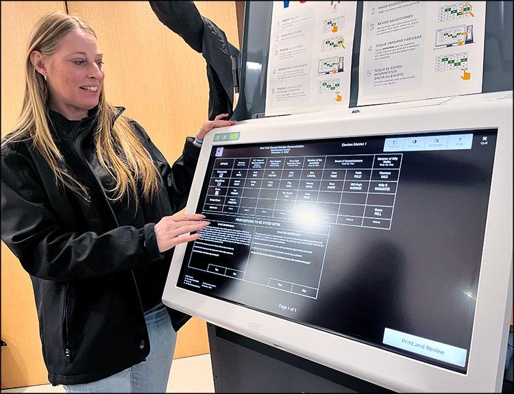 Also eliminated is the need to fill in ballots by hand. The machines have technology to change font size, screen background color, and language — English and Spanish in Suffolk County. They also allow voters to select only as many candidates as is permitted — eliminating errors that would invalidate a ballot.