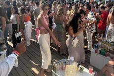 To book a beach table this Saturday, during Labor Day weekend, groups must spend a minimum of $5,000. A table on the deck this weekend costs a minimum of $10,000. Along with good music, a great view, and a beautiful crowd, that might be part of the appeal.
