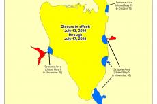 All of Three Mile Harbor, including its inlet and tributaries, will be closed to shellfishing from sunrise on Saturday through July 17 out of concern for public health related to the Clamshell Foundation's annual Great Bonac fireworks show, the New York State Department of Environmental Conservation's Division of Marine Resources announced Monday.