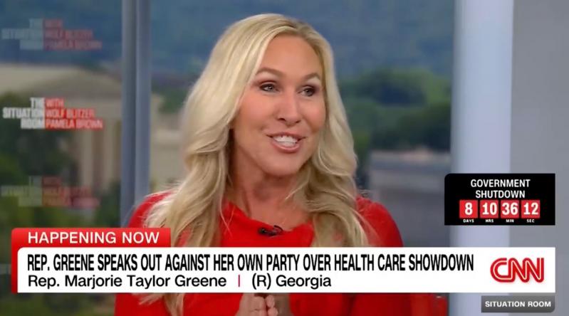 But a boy can dream. Can, in fact, come to admire this yellow-haired warrior, now 51 yet still jacked like the CrossFit trainer she once was. Putting aside the attention-seeking strategies of her recent-past life as a conspiracy theorist (hell, everybody’s doing it), she’s pretty much the only one of her Grand Ol’ Party with the gumption to cross Trump, to tell it like it is, that is — the government shutdown is on them, controlling all three branches as they do. To which you could add the party’s grip on the most watched TV news network and the right’s victories in the podcast and social media wars, and on and on.
