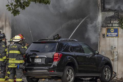 The East Hampton Fire Department was dispatched to 211 Springs-Fireplace Road at 9:54 a.m. on Wednesday in response to a report of a car on fire, but by the time firefighters arrived, "the whole shop was pretty much on fire," Chief Duane Forrester said.