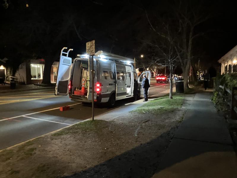 The road remained closed at 7 p.m. The sidewalks were open and restaurants were full, but yellow caution tape was strung around a section of the road that included a crosswalk and an East Hampton Town police mobile unit was on the scene.