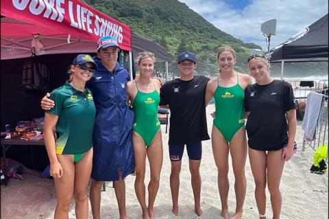 Massive waves greeted Hampton Lifeguard Association swimmers on their first day at the 2025 International Surf Rescue Challenge in New Zealand. Four East Hampton lifeguards were invited to participate in the international competition over Thanksgiving break as part of the United States Lifesaving Association Youth National Team: Gemma Garbuio, Liam Knight, Daisy Pitches, and Dylan Zucker. They faced currents so wild, some of the opening day’s ocean events were canceled.