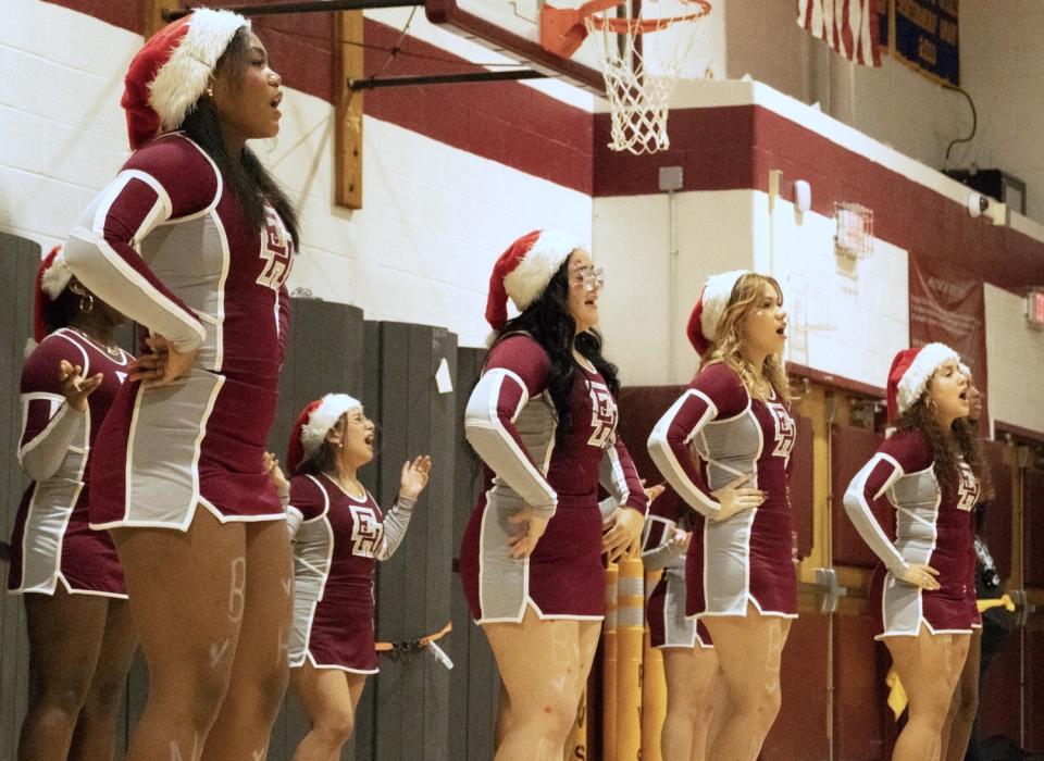 It’s appropriate to be writing about the Bonac cheer squad at the holidays, because cheers are a lot like Christmas songs. The classics are so popular that a new hit doesn’t come around all that often. “Victory” and “Don’t Fool” are among their most popular cheers, but this group is doing their best to change it up, and Coach Johnson encourages them.