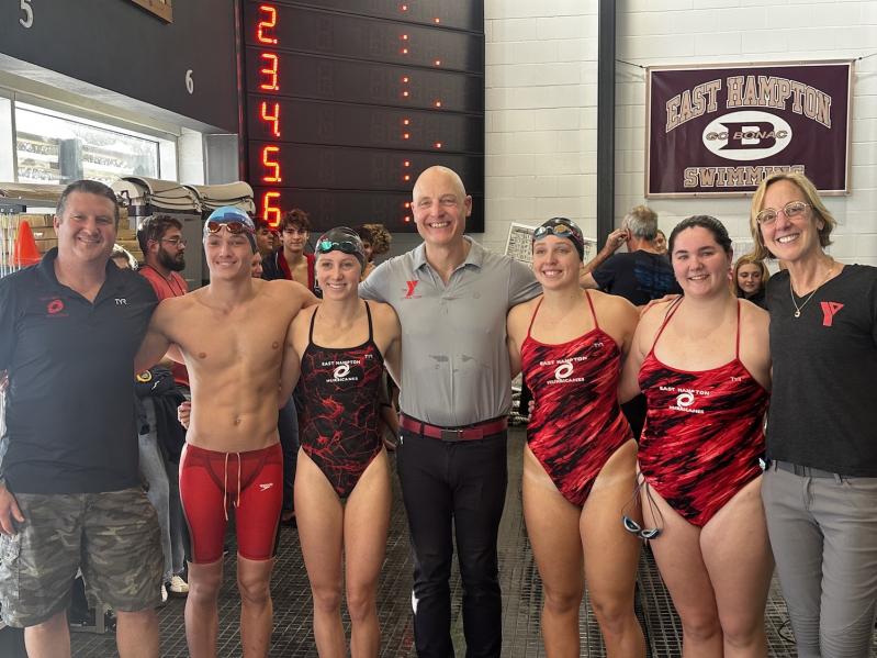 Before their final home meet on Sunday, the Y.M.C.A. East Hampton RECenter Hurricanes swim team hosted a grand send-off for its four seniors: Lizzie Daniels, Liam Knight, Lylah Metz, and Daisy Pitches.