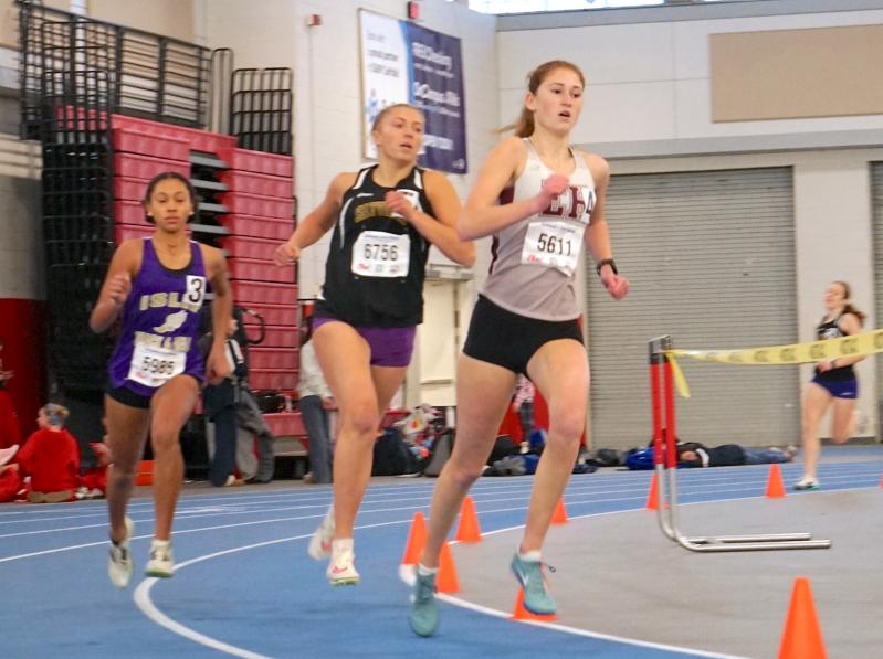 C.J. Echavarria set a school record and a personal record in the 55-meter high hurdles semifinals with a 9.31. That qualified her for the finals, where she came in fourth with a 9.33. Just two weeks ago, she set a school record of 9.38 at the league championships. Sophia Figueroa also qualified for the finals with a 9.45, and finished fifth with a 9.59.