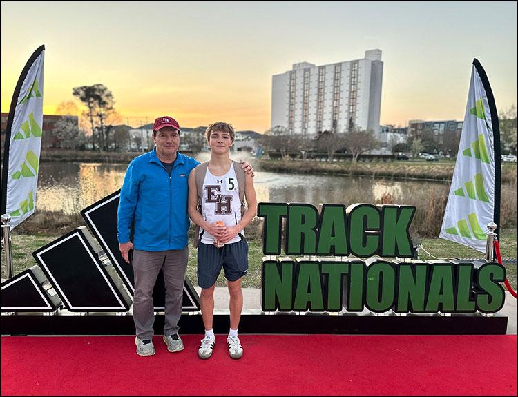 In his first-ever national competition, Jasper Samuelson, an East Hampton High School sophomore, ran a personal best in the mile. Racing as a member of the Old Montauk Athletic Club, Samuelson finished second in his heat — and 29th out of 117 — in the national elite mile competition, with a time of 4:35.35.