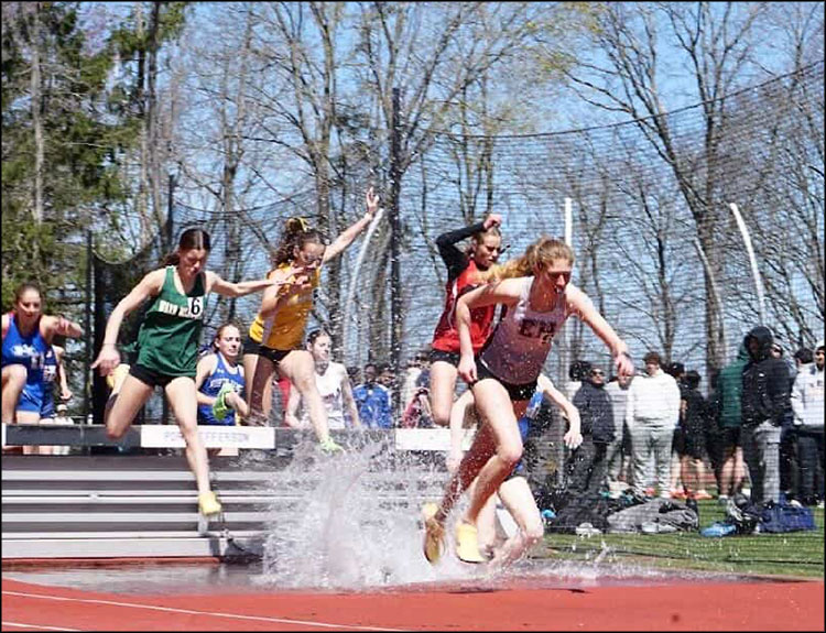 On a bitterly cold and windy day, seven Bonac athletes decided it might be fun to splash around in some frigid water. It was part of the Rod Cawley Steeple Fest Plus Invitational in Port Jefferson on April 8, a track and field competition that includes the steeplechase, a race with hurdles and water jumps. While the photos show what an incredible contest the steeplechase is, they don’t illustrate how much work and practice it takes to even attempt it.