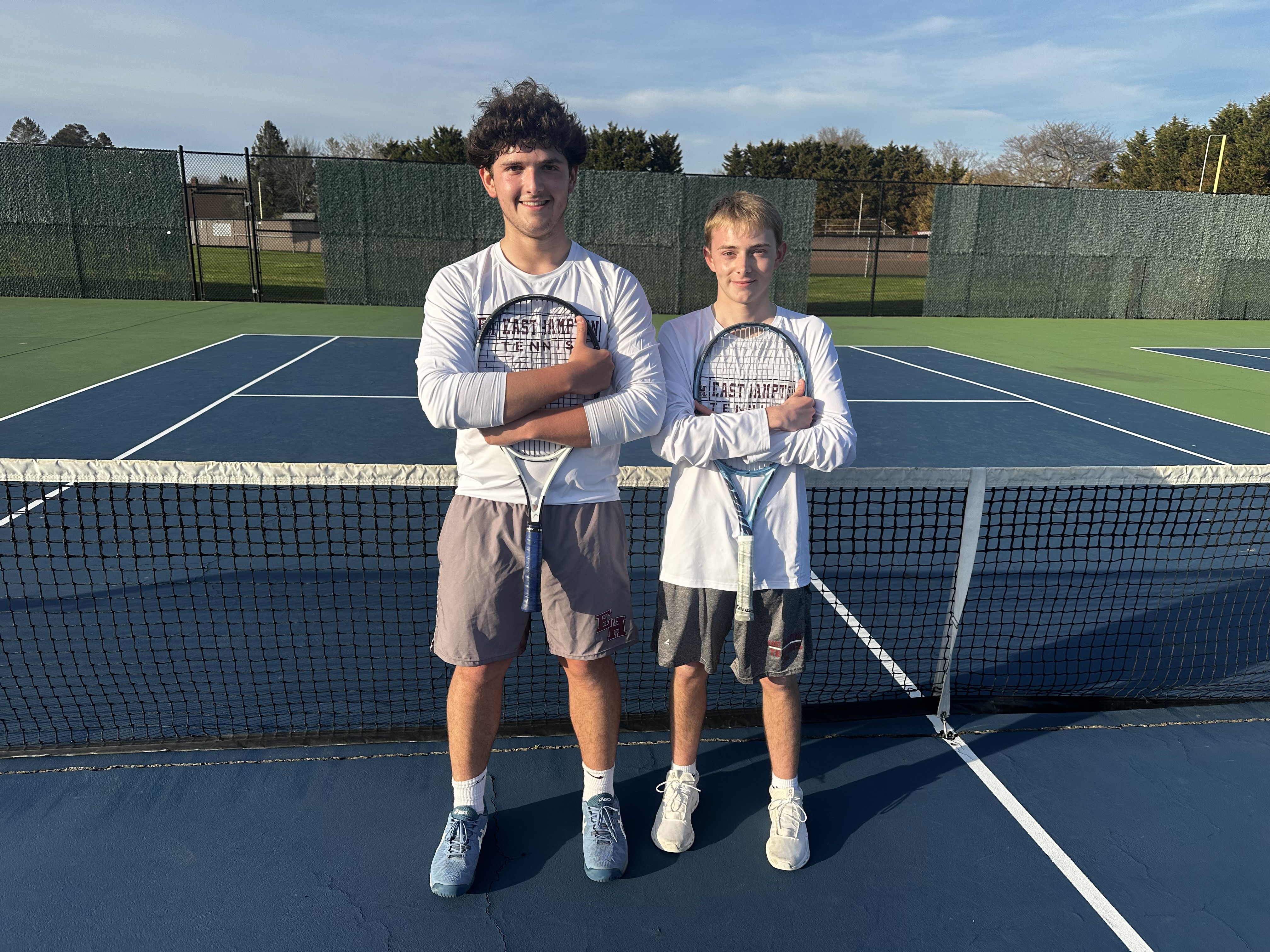 The entire East Hampton High School boys varsity tennis team lined the fences, watching intently. Their match against Eastport-South Manor on April 14 would come down to the last doubles contest of the day. If their third pairing — Joseph Martinez-Garces and Lucas Centalonza — could take the third set, East Hampton would clinch the match. Martinez-Garces and Centalonza took the set 6-2, and East Hampton beat Eastport-South Manor 5-4.