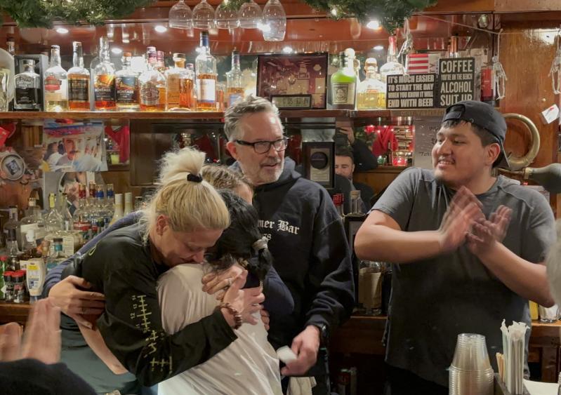As he spoke, the staff, including Jenny Doud and Joe Weeks, both bartenders and managers, stood off to the side, arms around each other.