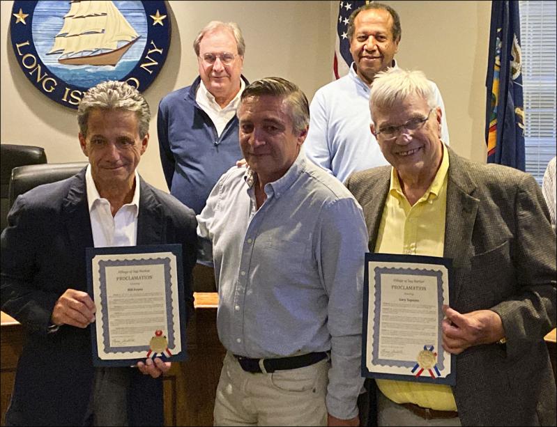 Ahead of their induction into the New York State Broadcasters Association Hall of Fame, Bill Evans and Gary Sapiane of WLNG were recognized with proclamations from the Sag Harbor Village Board on Tuesday.