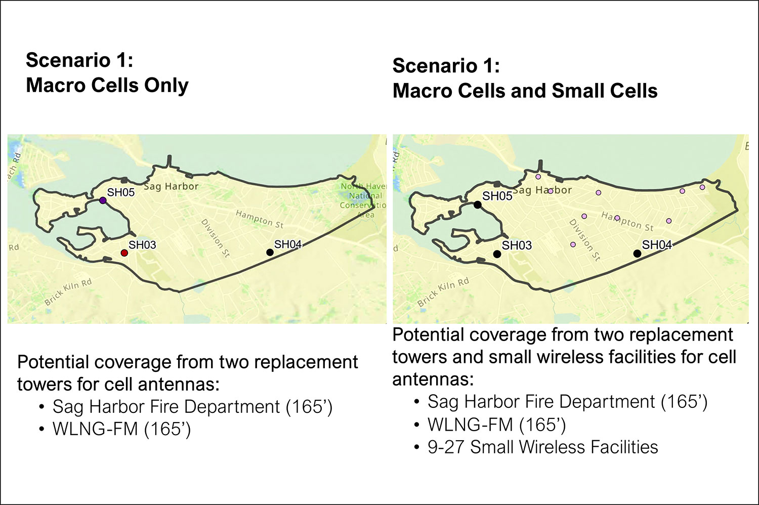 With a taller tower at the firehouse, the addition of approximately nine “small wireless facilities,” or micro towers, which are used to add capacity to a network and are usually no more than 50 feet tall, would fill in remaining coverage gaps. “Ideally, you would want those built for all the providers to share,” Ms. Rabold said, “but we haven’t really seen a lot of that happening in the field yet. So we say your minimum number would be nine, and if all the wireless providers wanted to supplement those smaller coverage gaps, you may end up with as many as 27.”