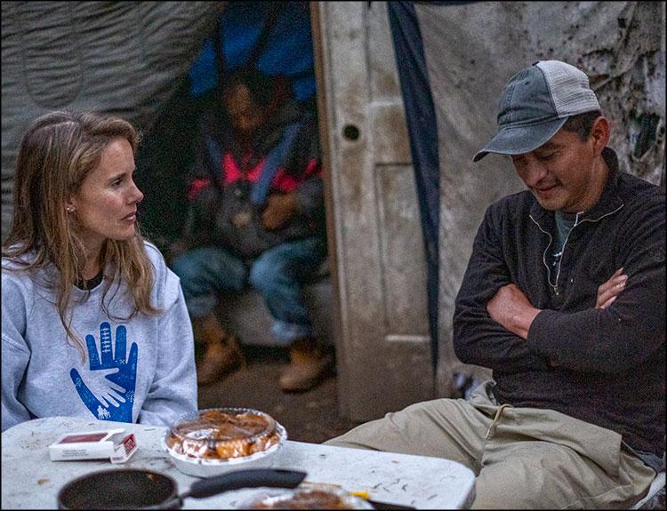 In December 2022, she learned of a homeless encampment in the woods of Southampton, where a group of laborers were sleeping outside in tents in dangerously low temperatures. “It was so incredibly cold, I couldn’t even believe it,” she said. “I visited them, and since then I’ve been getting to know this community very well.”
