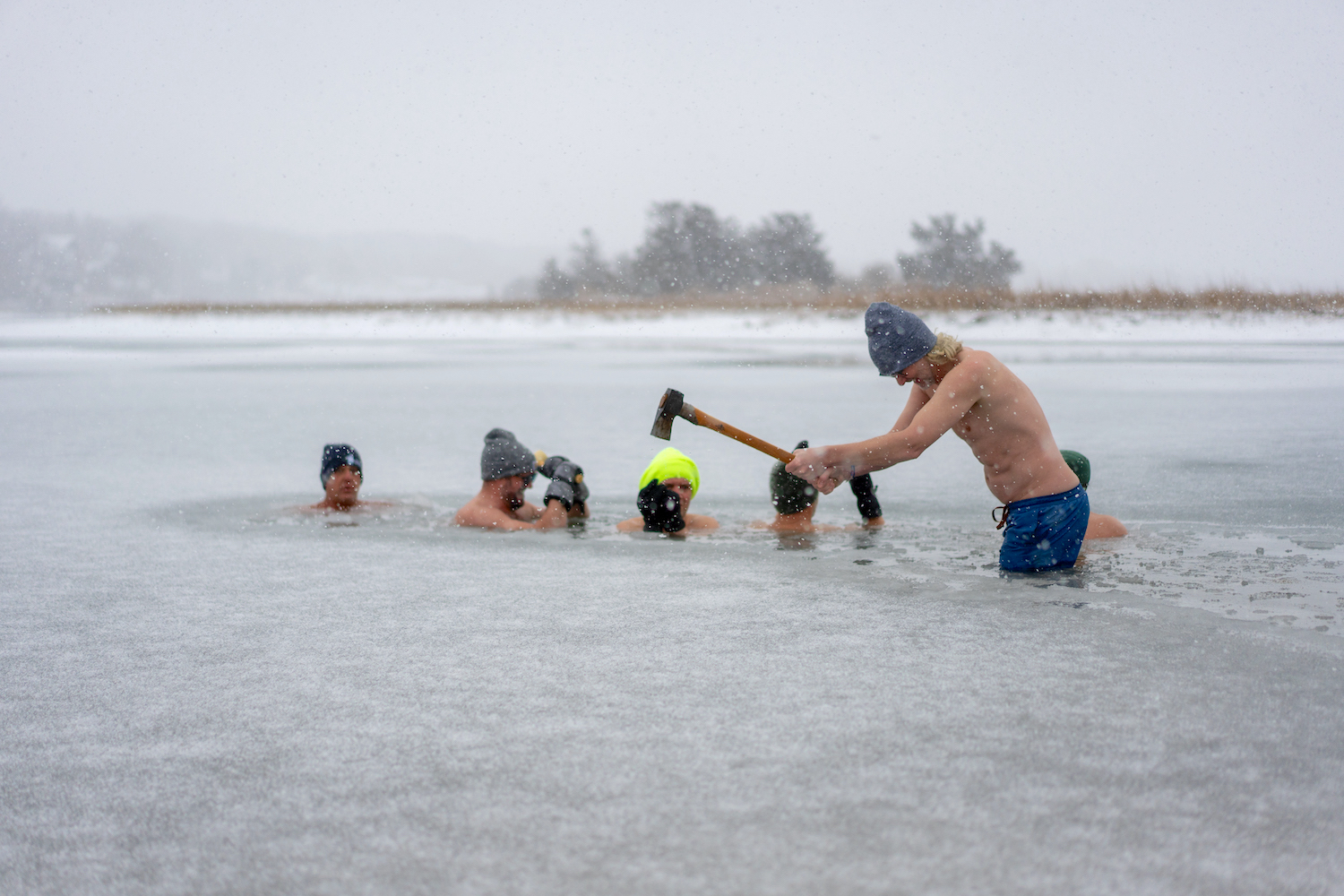 “When you go in in November,” he added, “it’s still refreshing, but when you’ve got people showing up with sledgehammers to get through the ice, it seems more daring.”