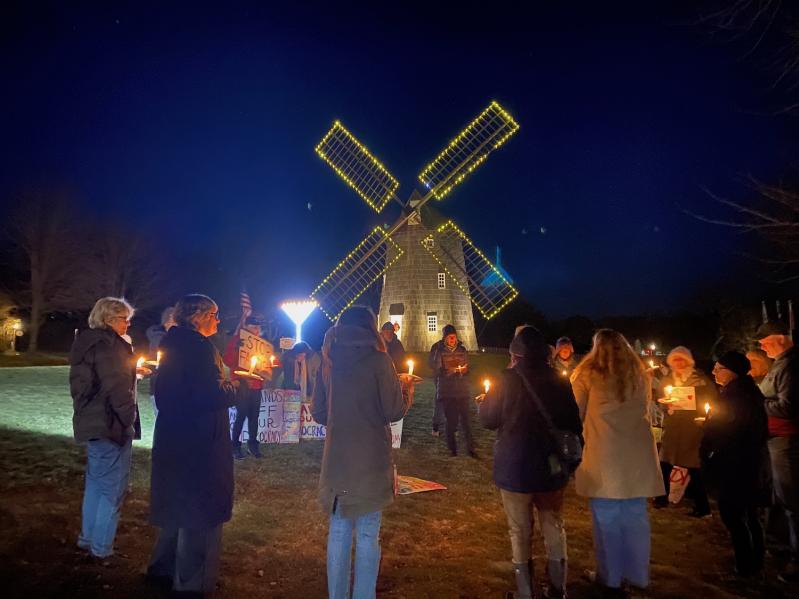 Between 40 and 50 people gathered at the Hook Mill, most holding candles or flashlights. As the group formed a circle, the event quickly became both a vigil to remember the killing of Ms. Good and the death, the previous day, of Barbara Burnside of Springs, who had organized the "No Kings" rallies at East Hampton Town Hall in 2025.