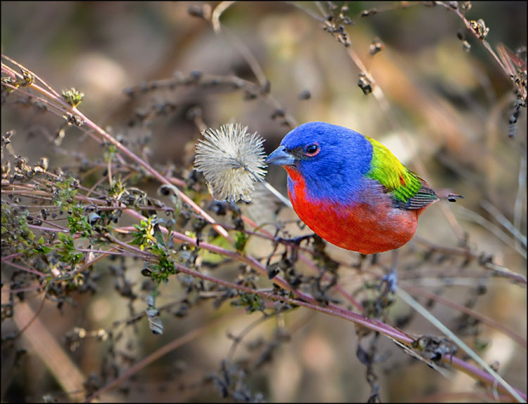 Mr. Douglas reviewed the photos from his camera and sure enough, a male painted bunting was visiting his snow-covered yard in early February.