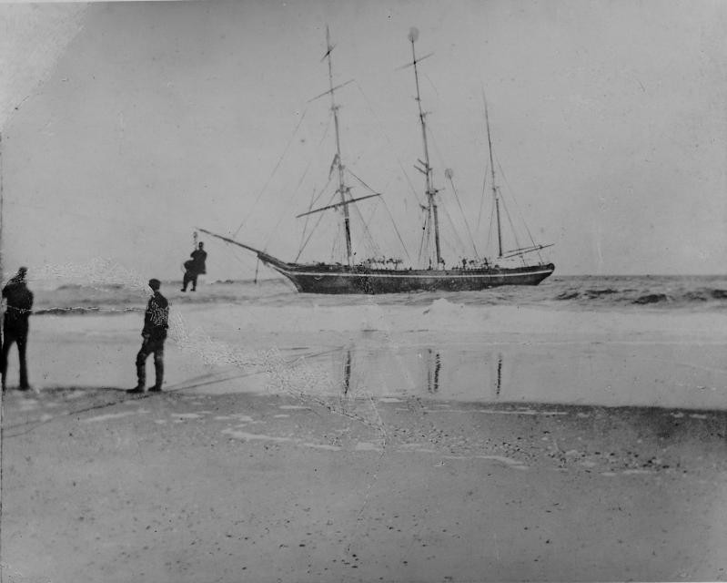 Luckily, members of the Georgica Life-Saving Station spotted the vessel soon after it ran aground, and by daylight on the 22nd all 11 crew members had been safely brought ashore, along with a monkey and a parrot. The parrot cursed profusely and with great skill, and as a result was purchased for $2 by Condit Miller (1868-1917), a member of the lifesaving crew.