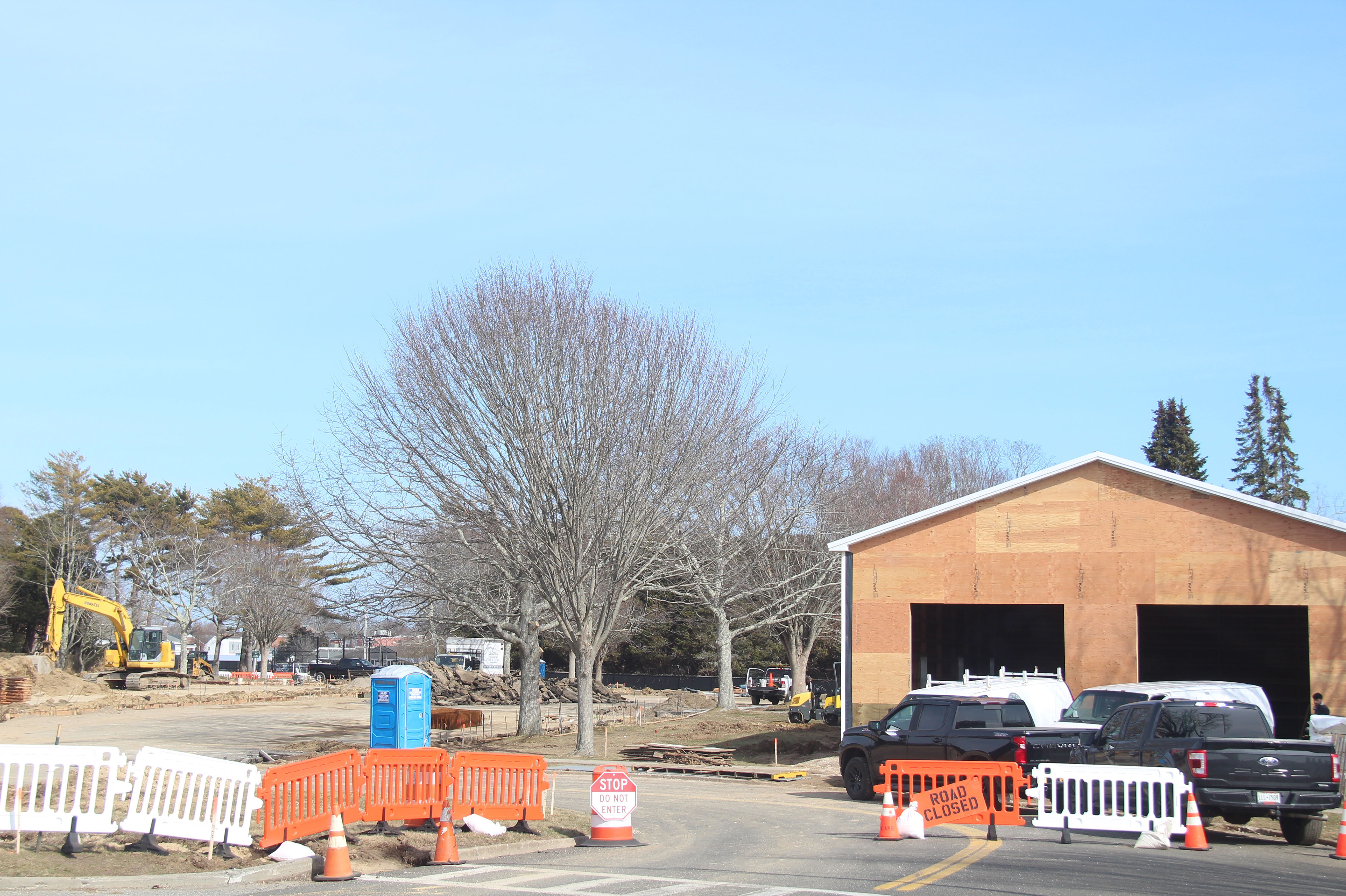 Construction is “well underway” at the long-term parking area at the end of Lumber Lane in East Hampton Village, the village administrator said on Friday, and a barn for the Fire Department’s antique trucks and equipment has quickly arisen adjacent to the construction site.