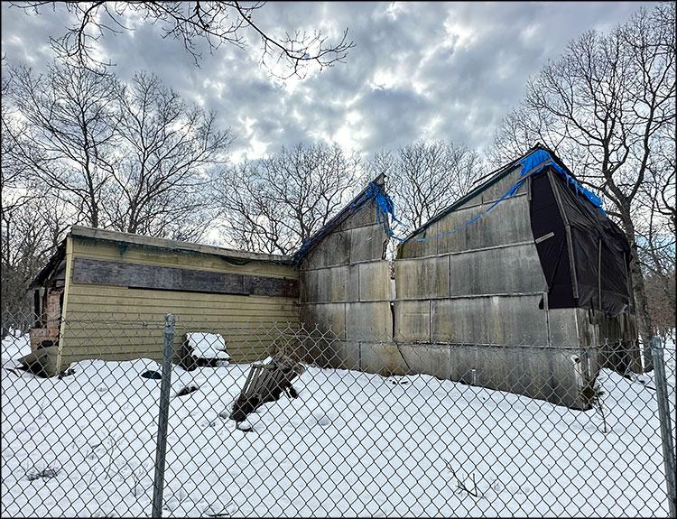 In Springs at the Brooks-Park property on Neck Path, the partial collapse of the James Brooks studio was discovered on Sunday by Scott Bluedorn, an artist and board member of the Brooks-Park Arts and Nature Center.