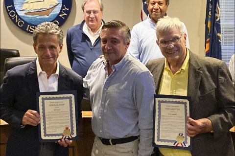 Ahead of their induction into the New York State Broadcasters Association Hall of Fame, Bill Evans and Gary Sapiane of WLNG were recognized with proclamations from the Sag Harbor Village Board on Tuesday.